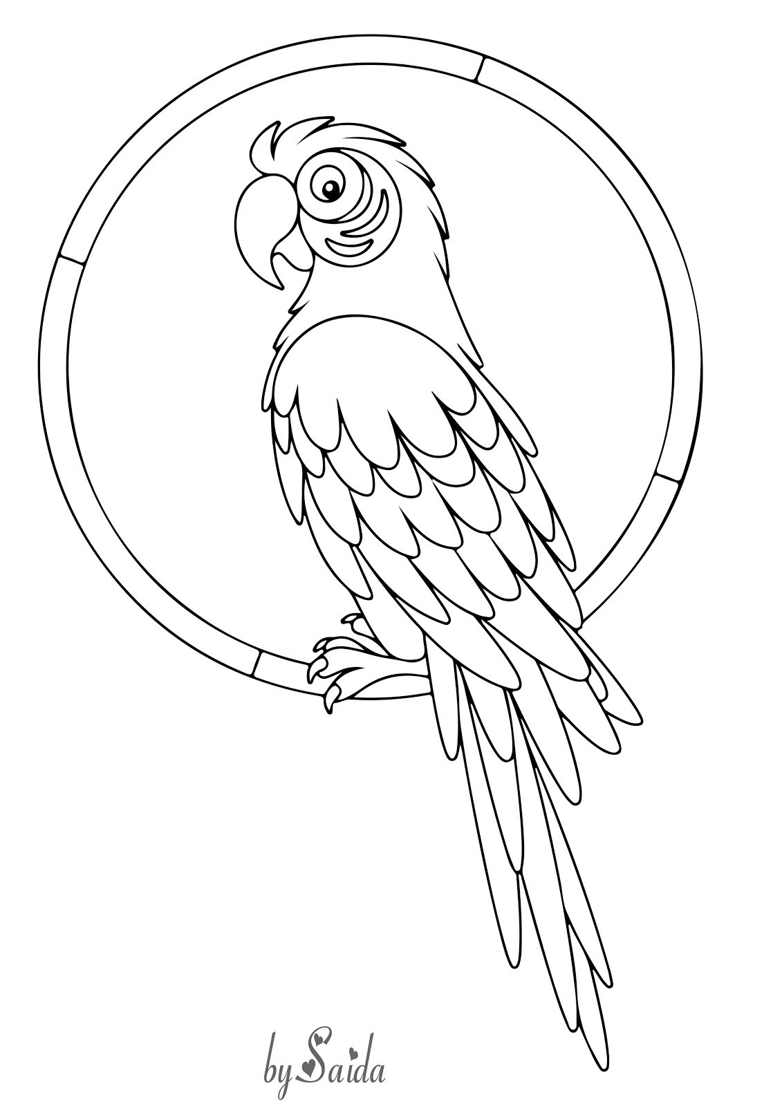 черно белый попугай рисунок для срисовки