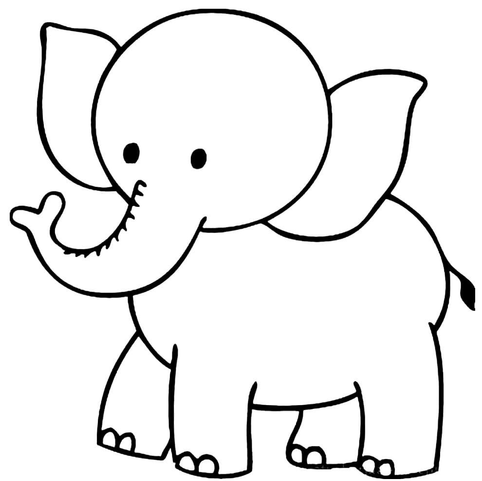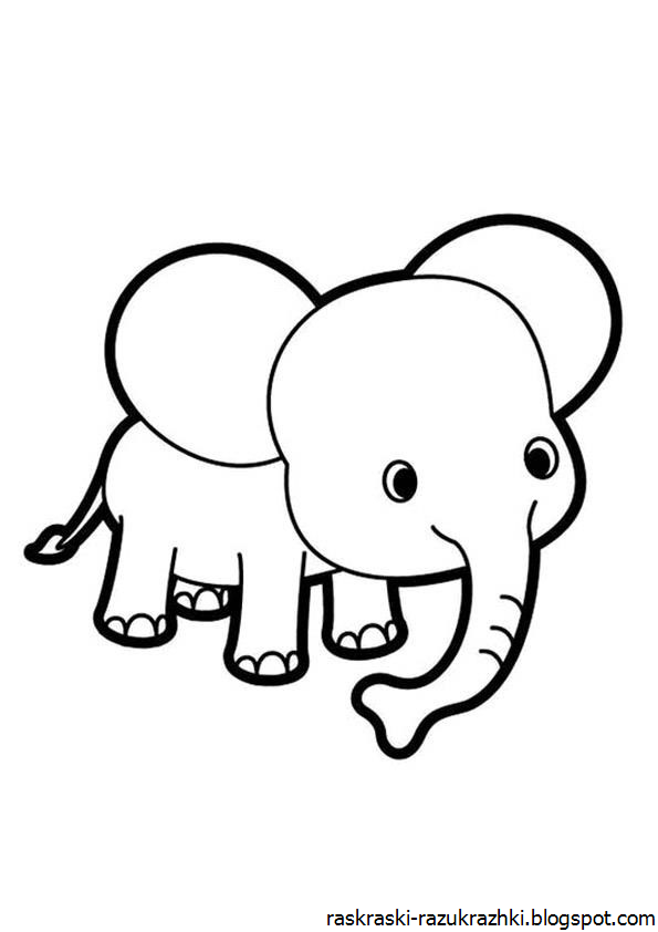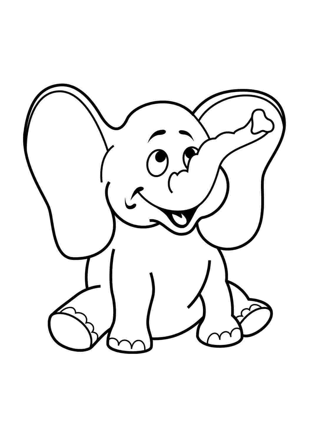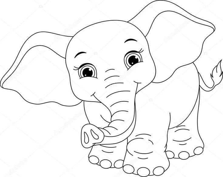 слоненок рисунок для детей черно белый для срисовки
