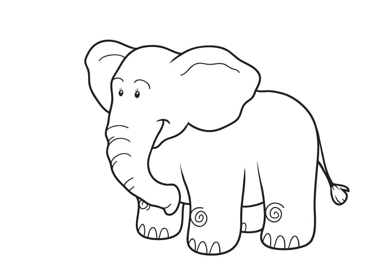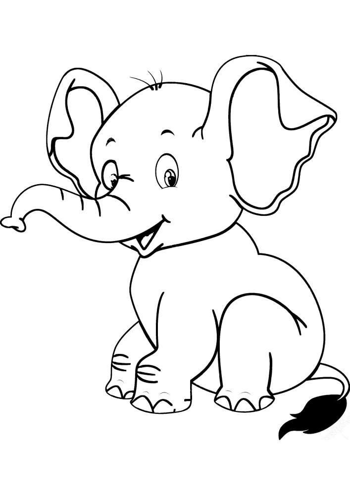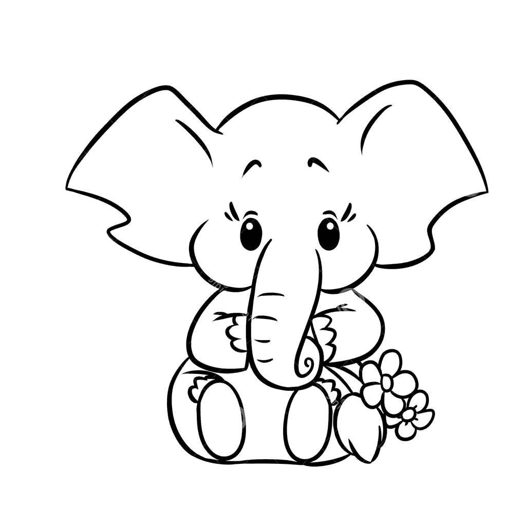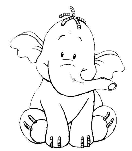 слоненок рисунок для детей черно белый для срисовки
