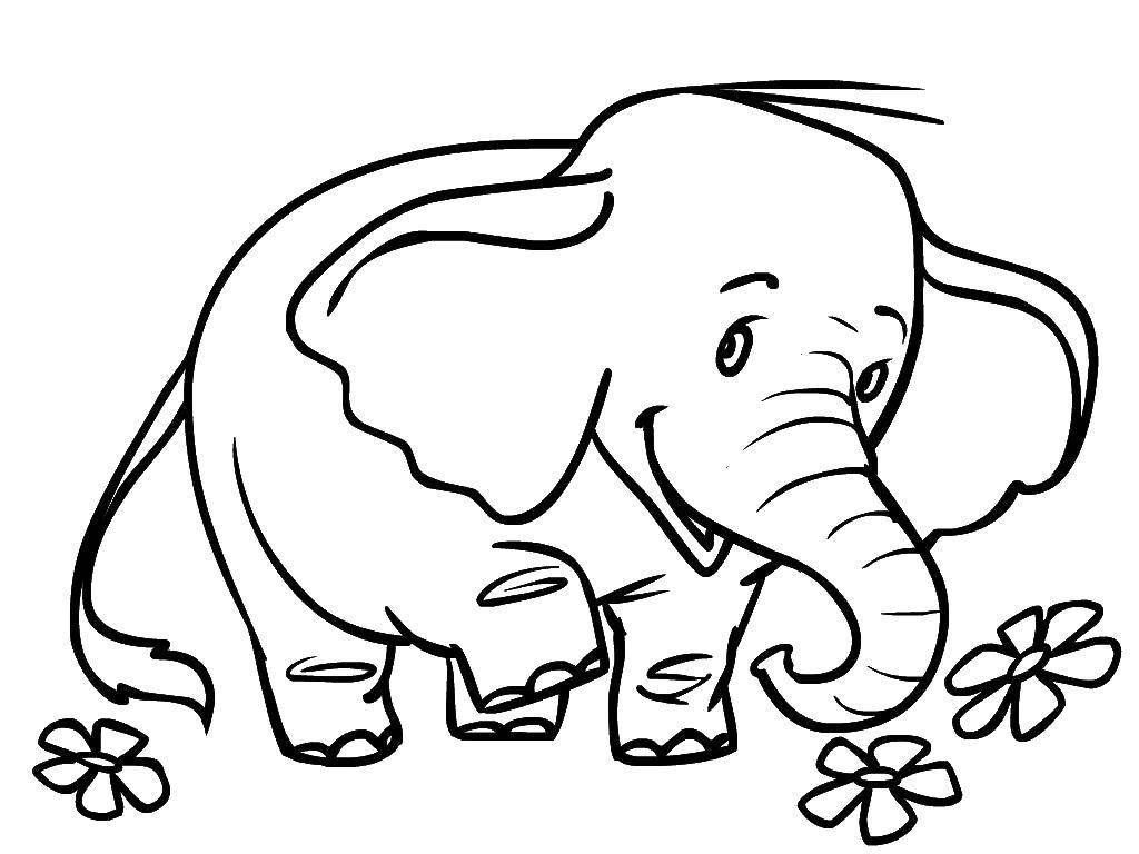 Слоник с цветами раскраска