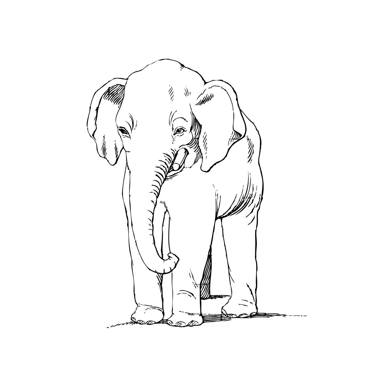Слон рисунок черно белый для детей