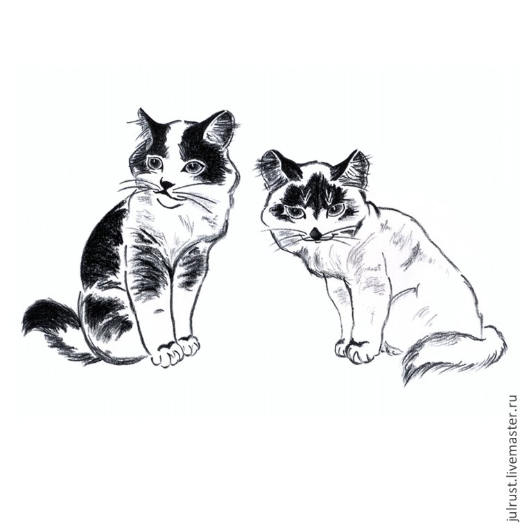 Кошка рисунок черно белый