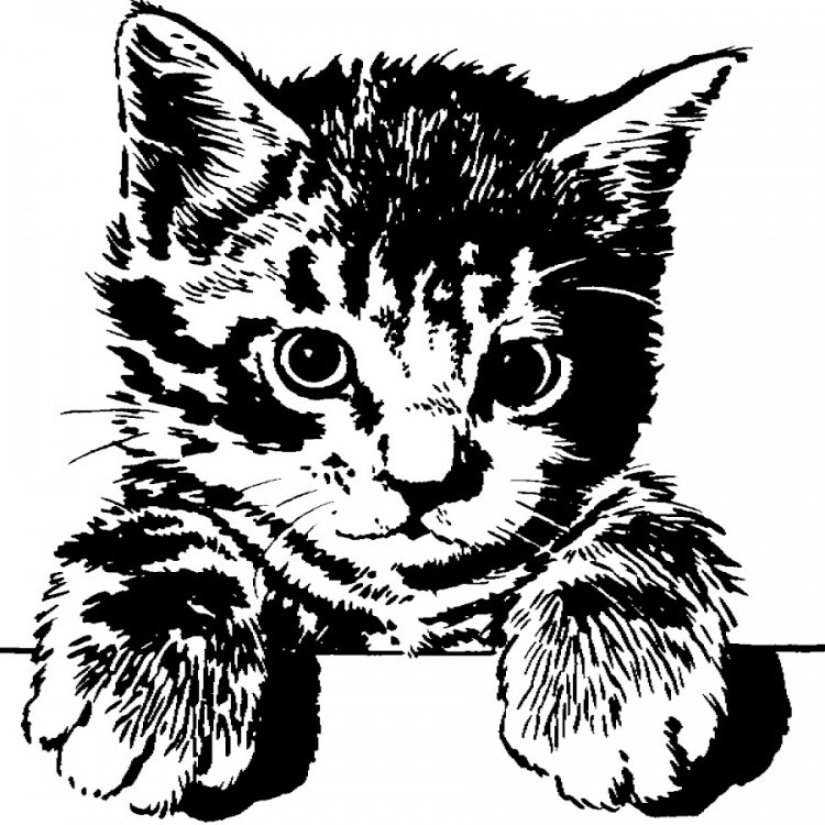 ![Котик черно белый рисунок]()