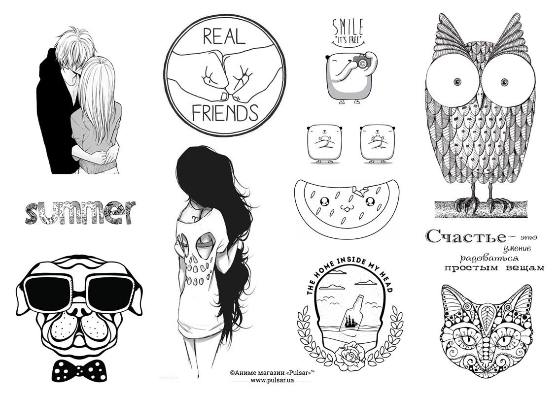 Стикеры для распечатки черно белые
