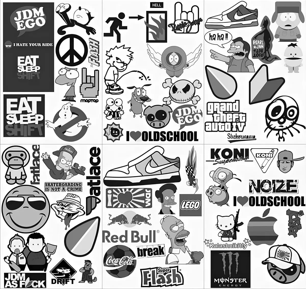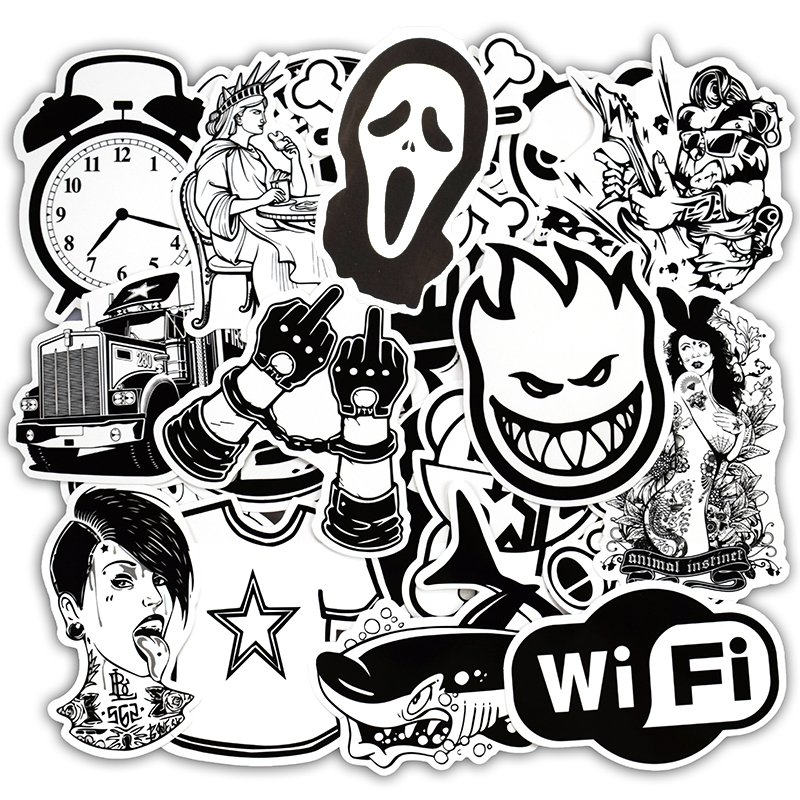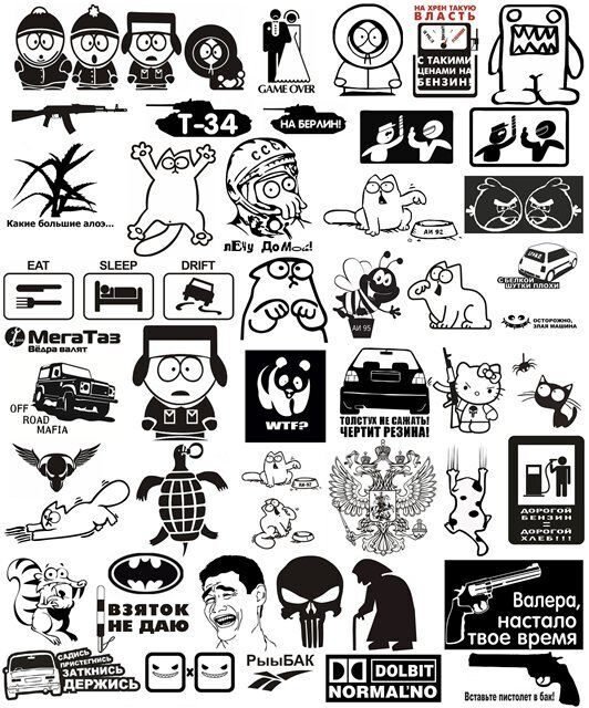 ![Наклейки черно белые много]()