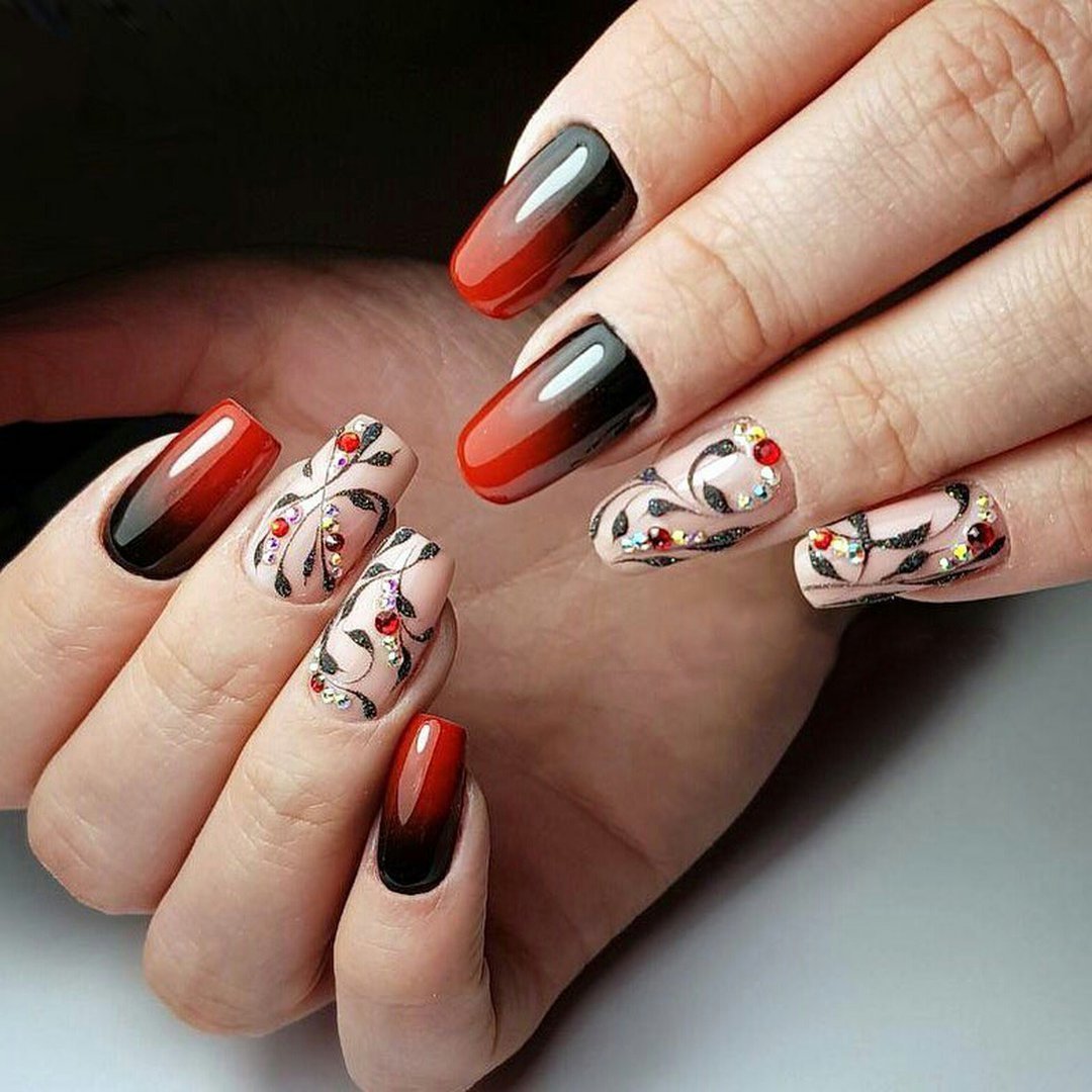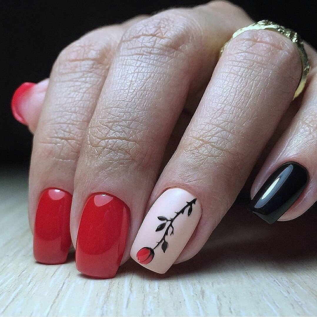 Маникюр красный с черным
