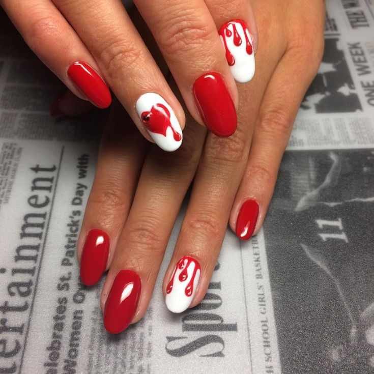 ![Ногти красные с белым]()