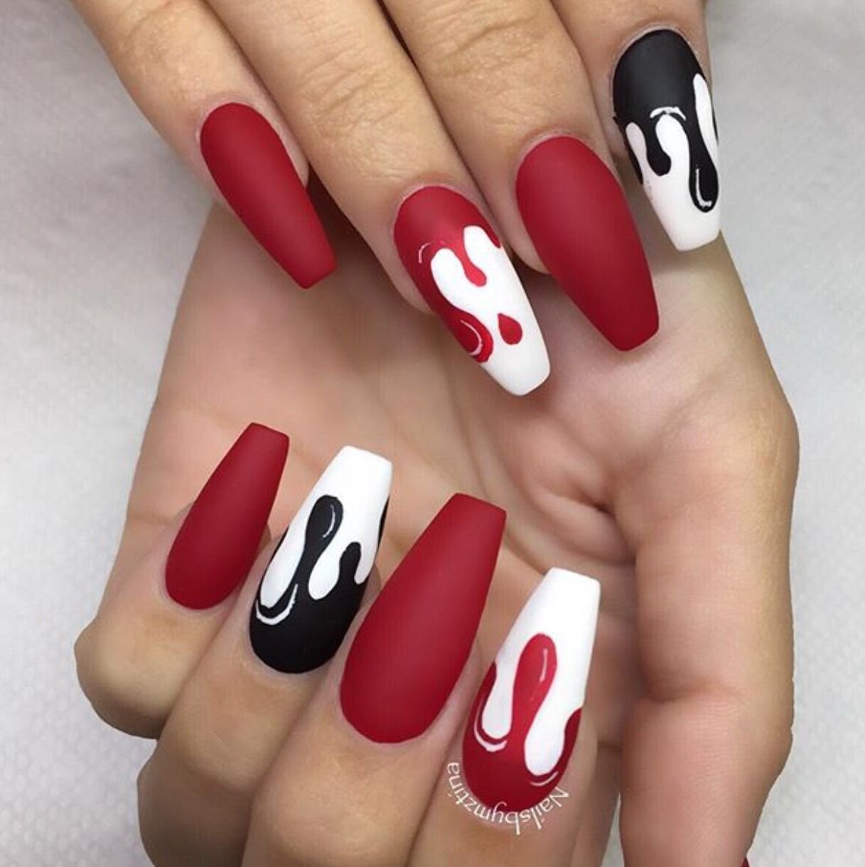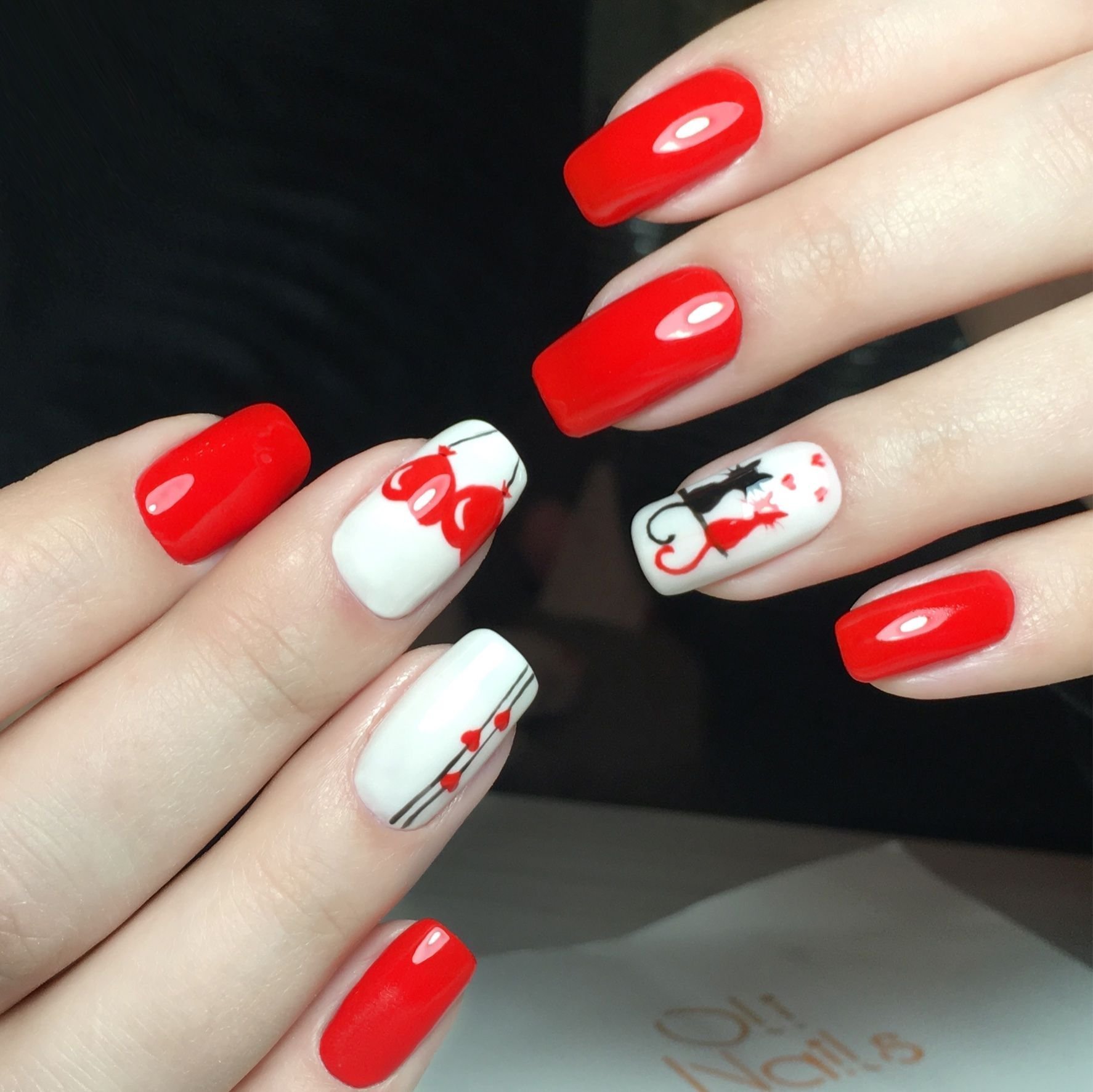 ![Наращивание ногтей чёрно красно белые]()