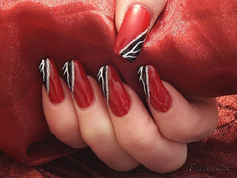 Дизайн ногтей красный с серебром