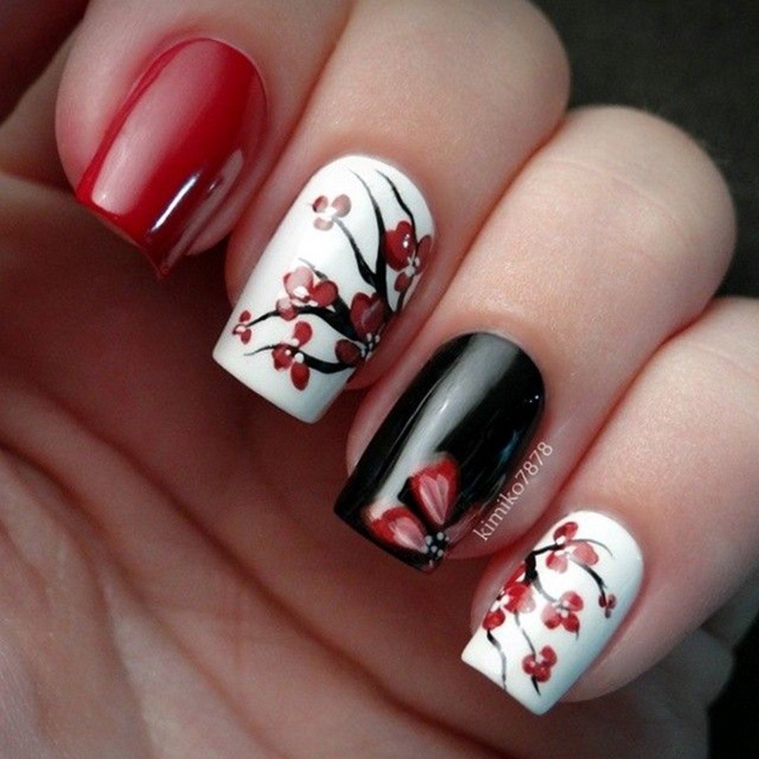 Маникюр красный черный белый