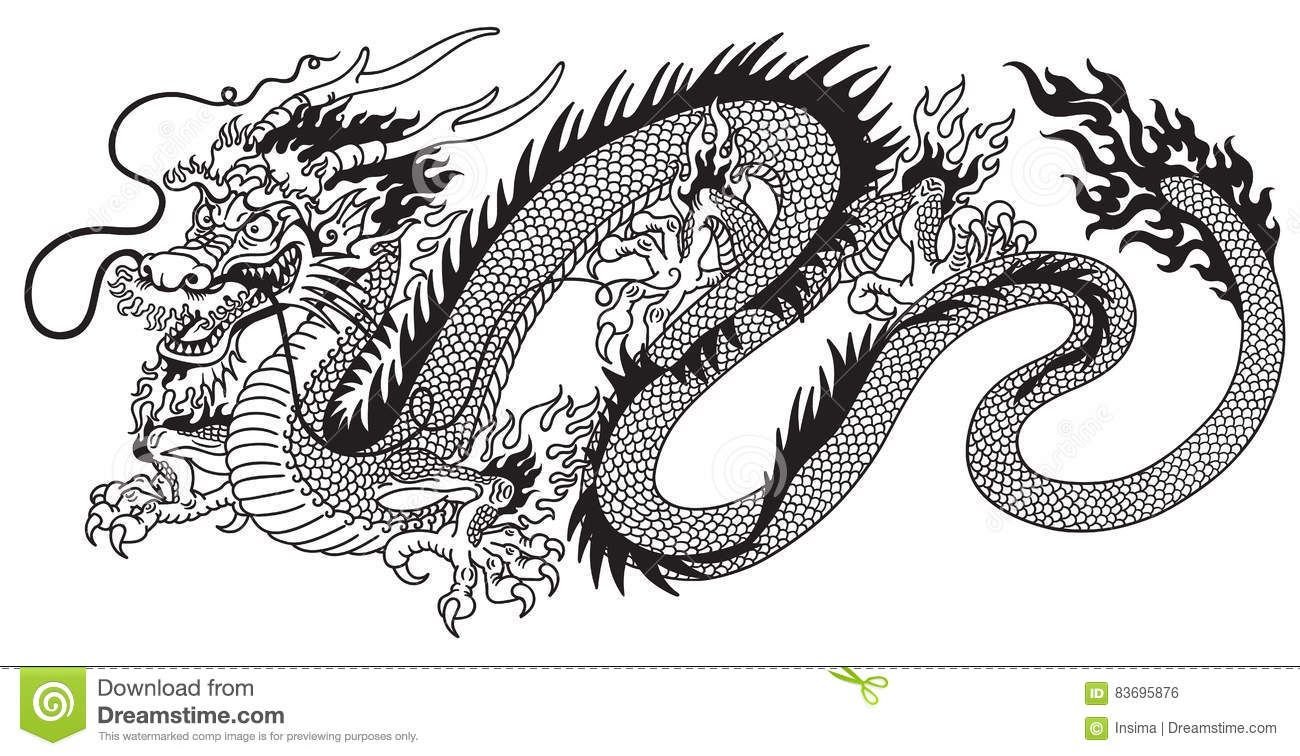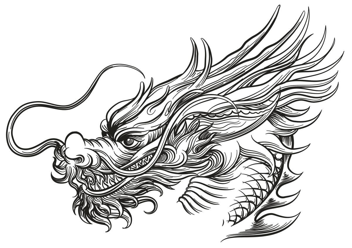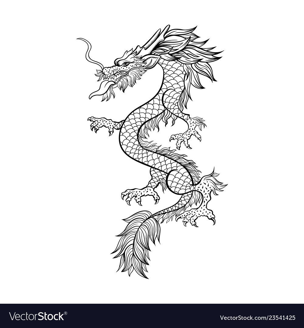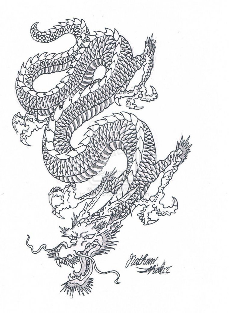 ![Китайский дракон эскиз]()