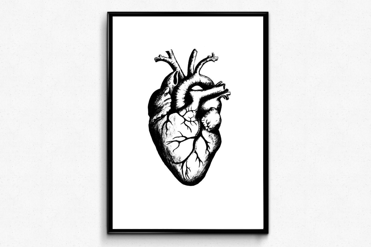 Анатомическое сердце черно белое