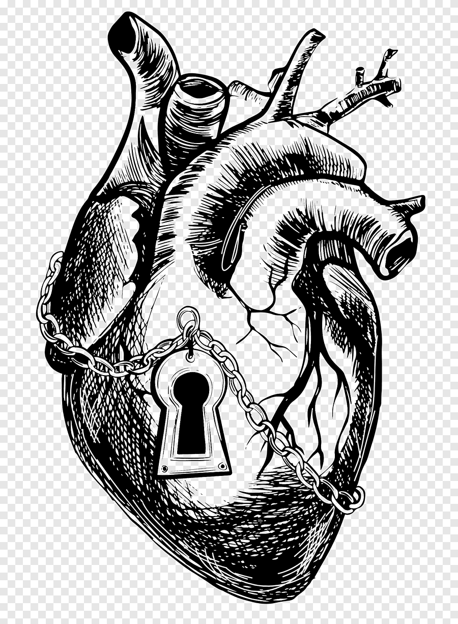 ![Сердце человека черно белое]()