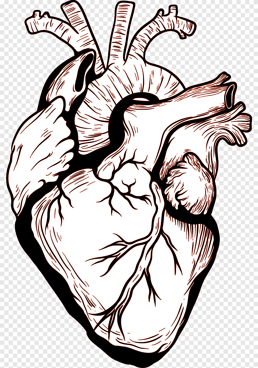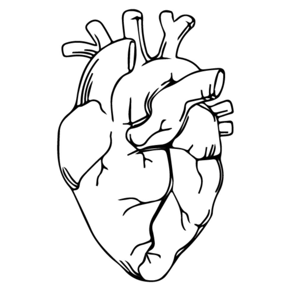 ![Анатомическое сердце черно белое]()