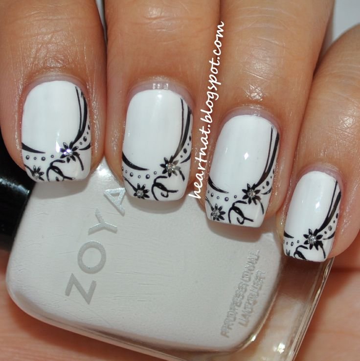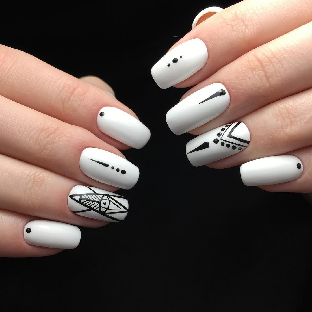 Белые ногти с черным рисунком