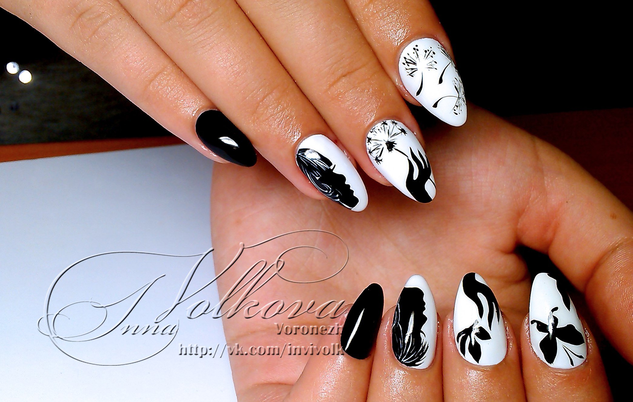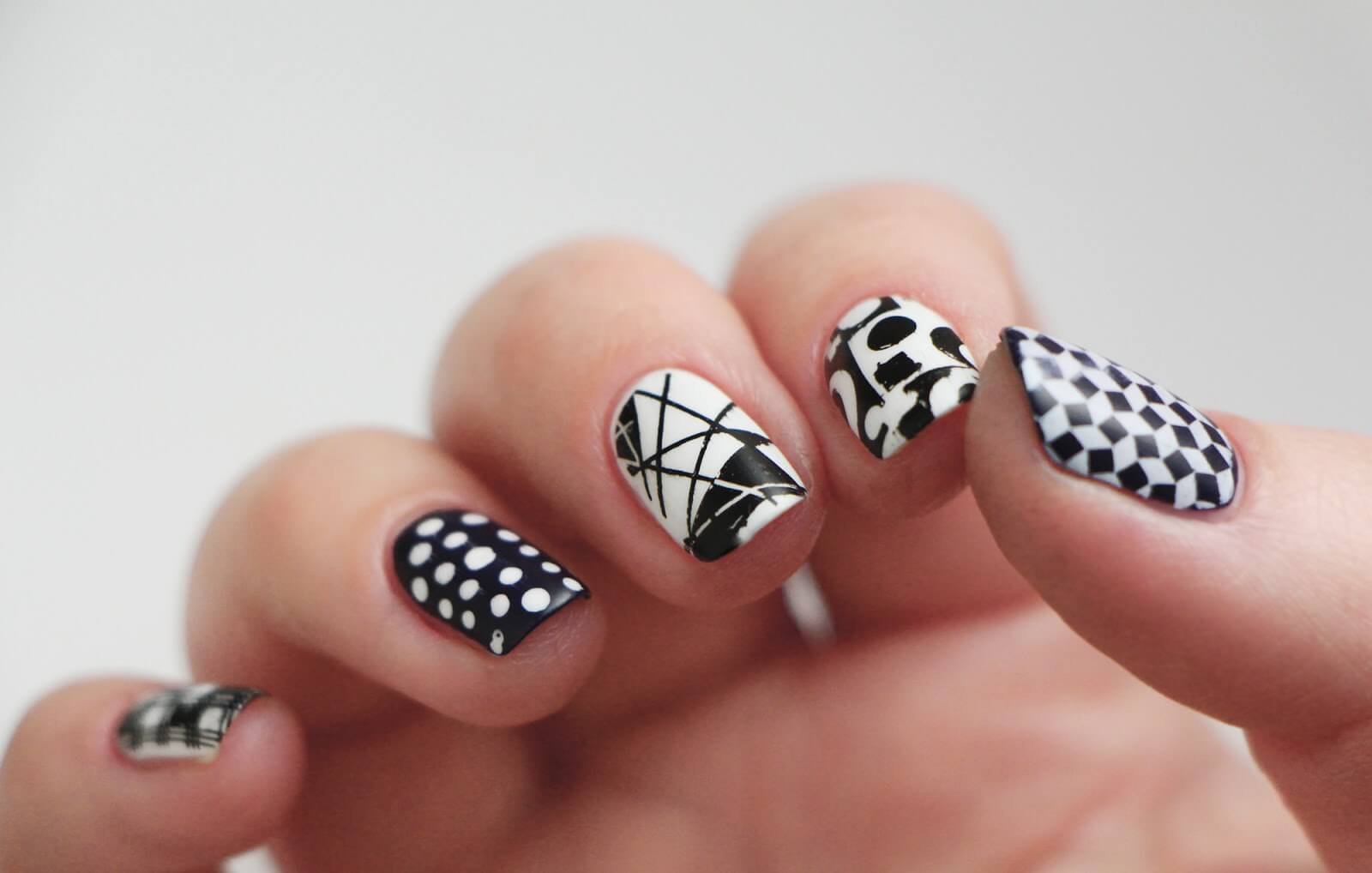 Чёрно-белые рисунки на ногтях