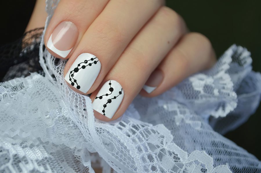 Маникюр белый с черным