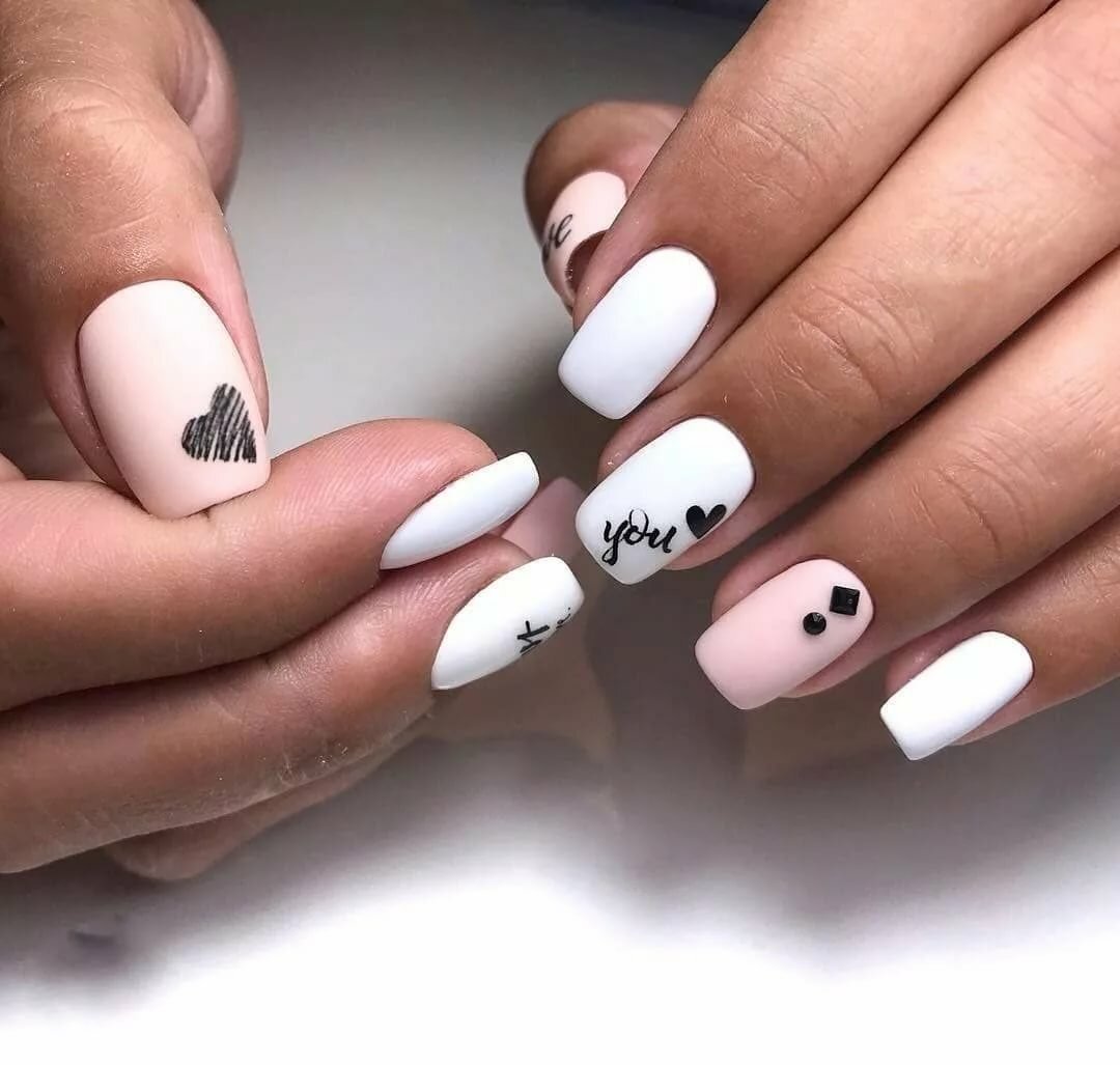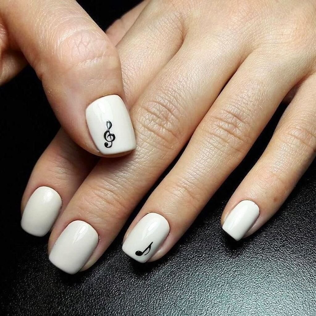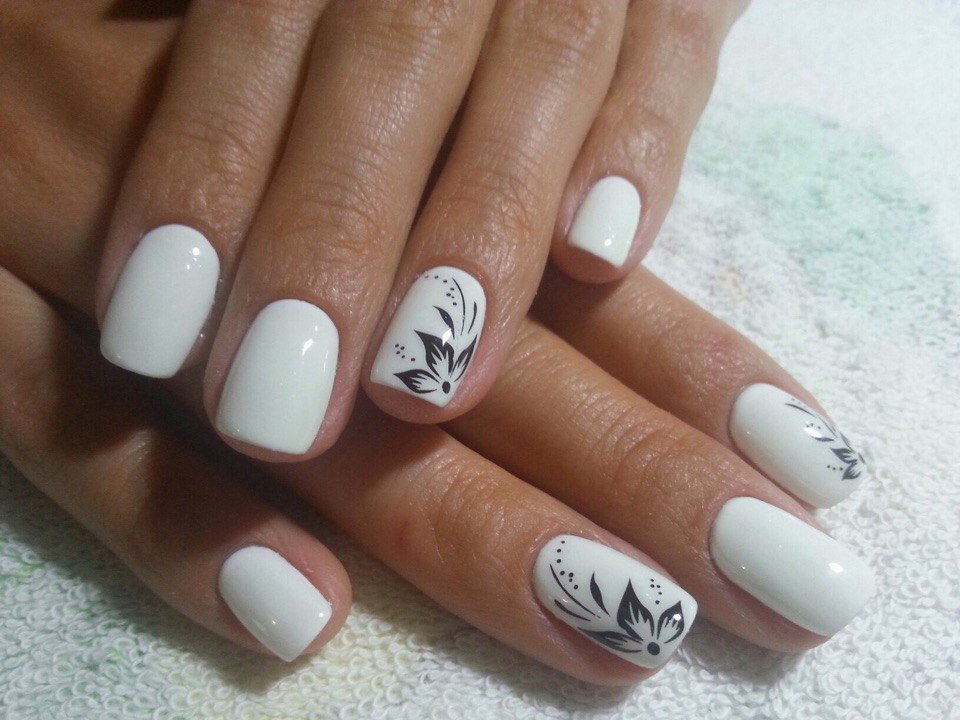 Маникюр на короткие ногти белый с черным рисунком