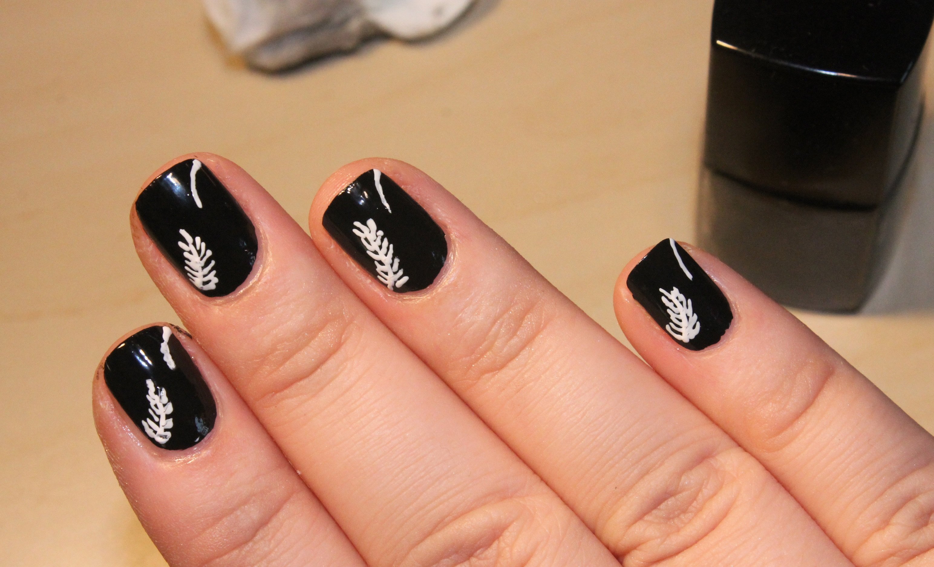 ![Белые ногти с черным рисунком]()