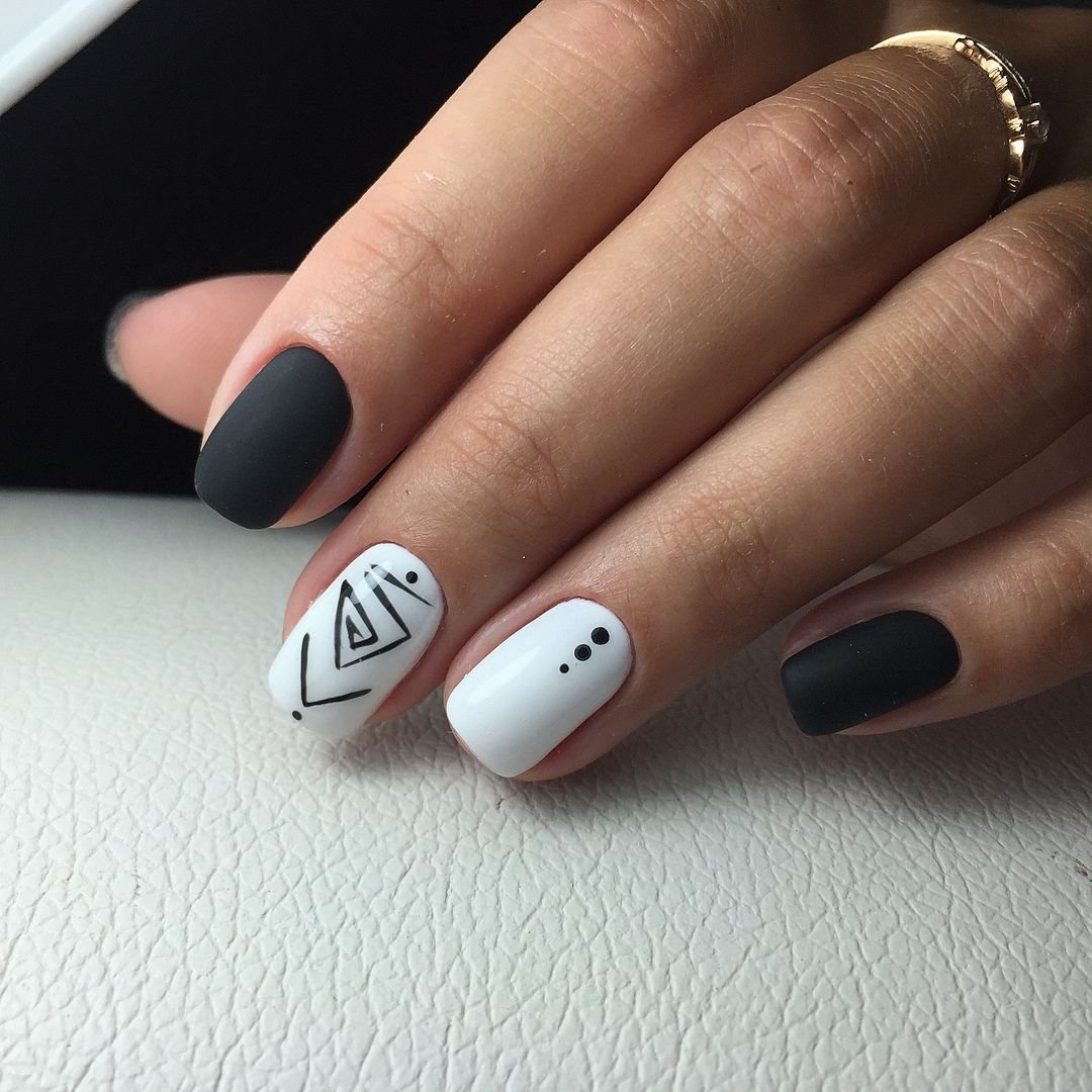 Черно белый геометрический маникюр