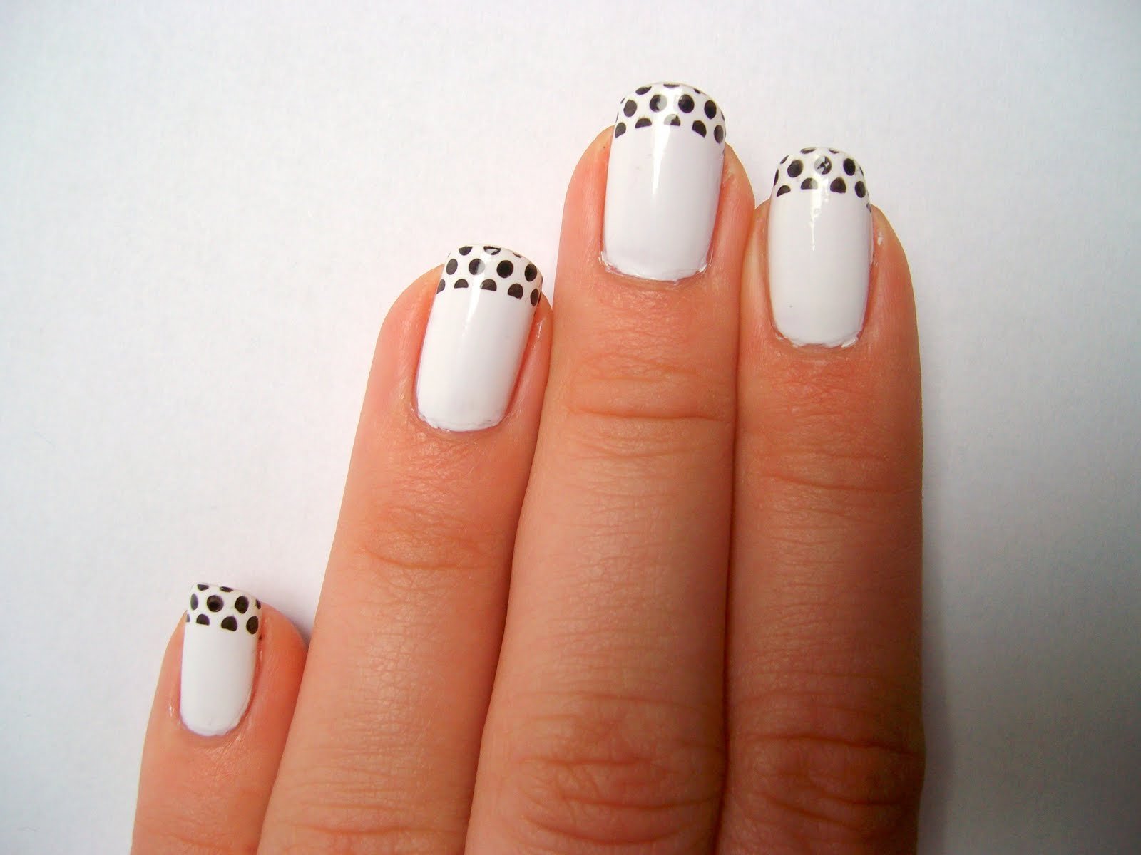 ![Белый маникюр с точками]()