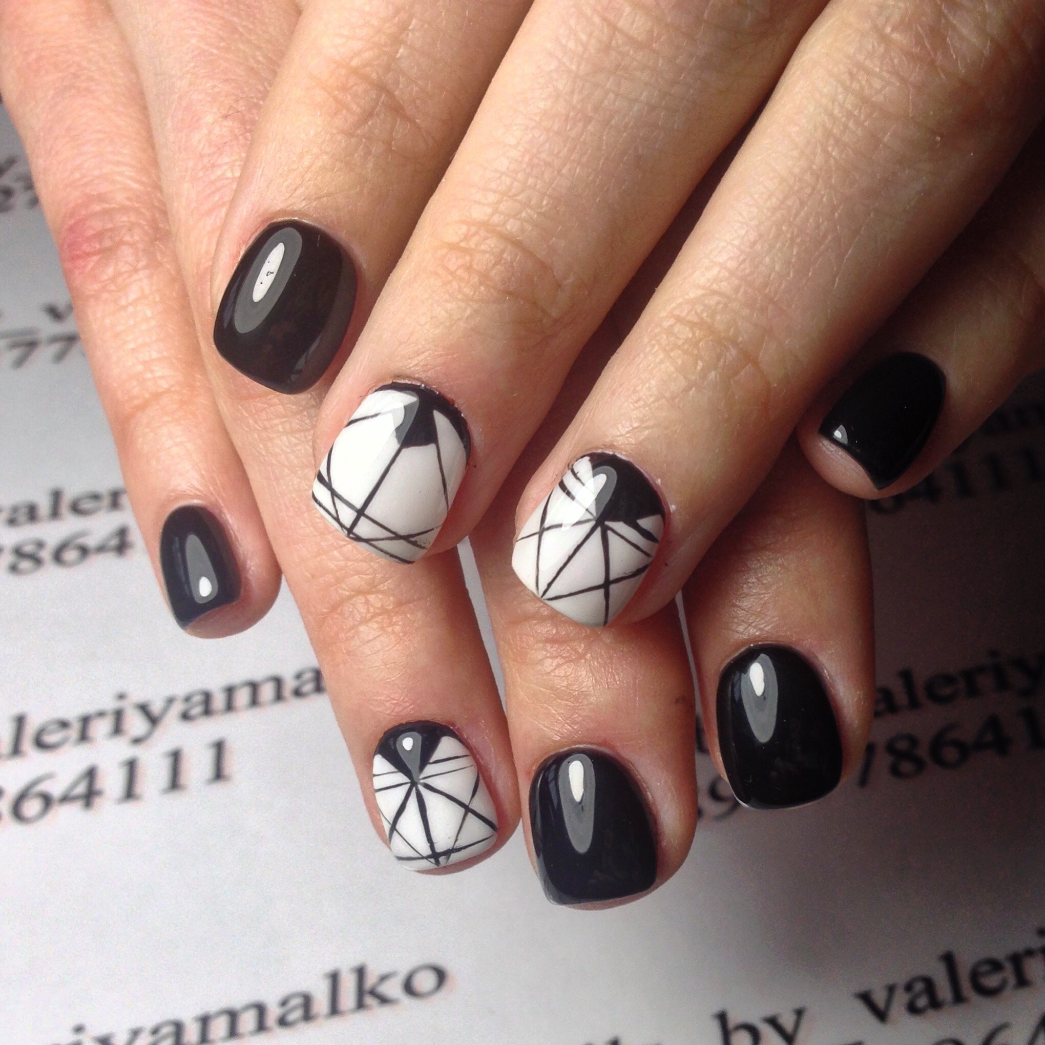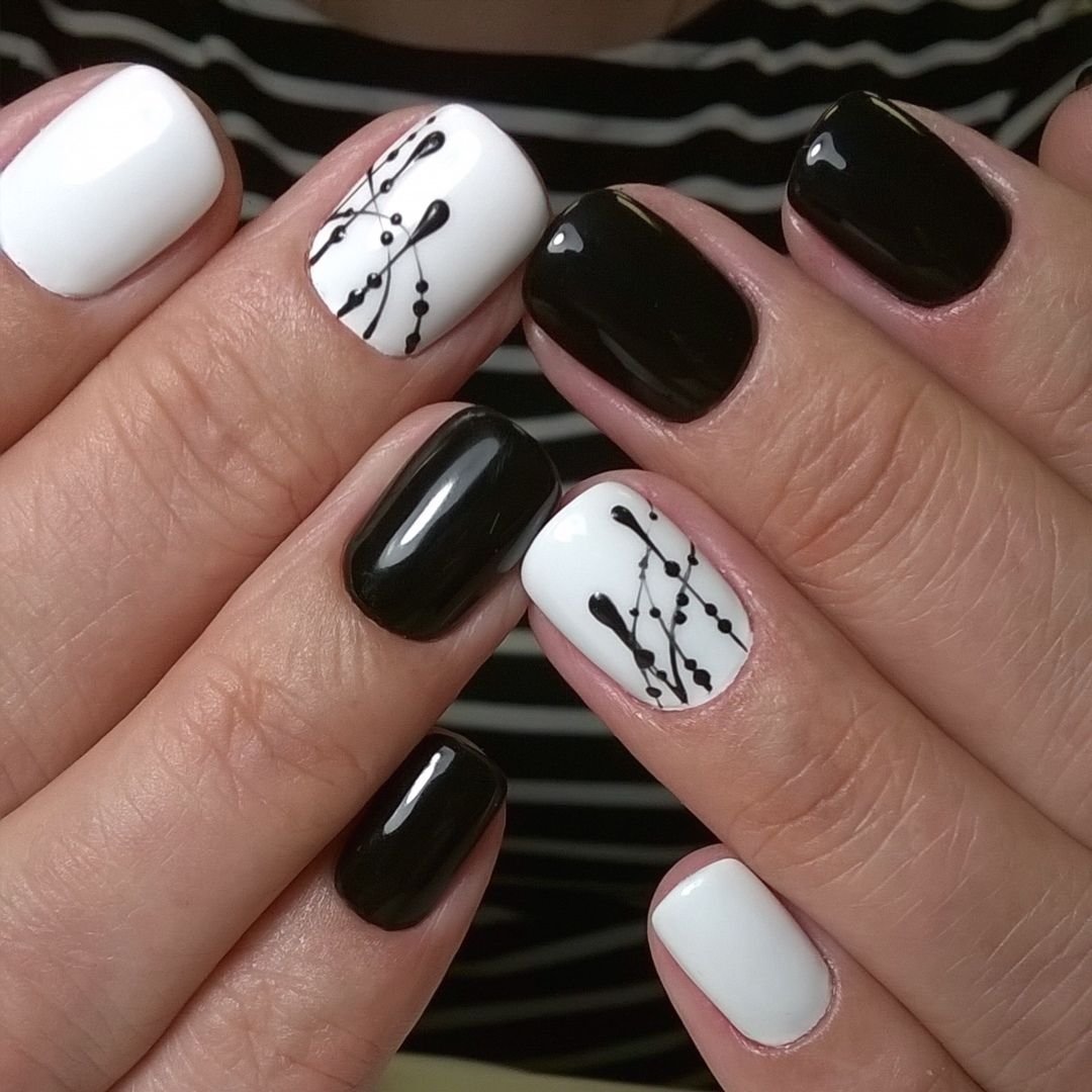 Маникюр шеллак черно белый