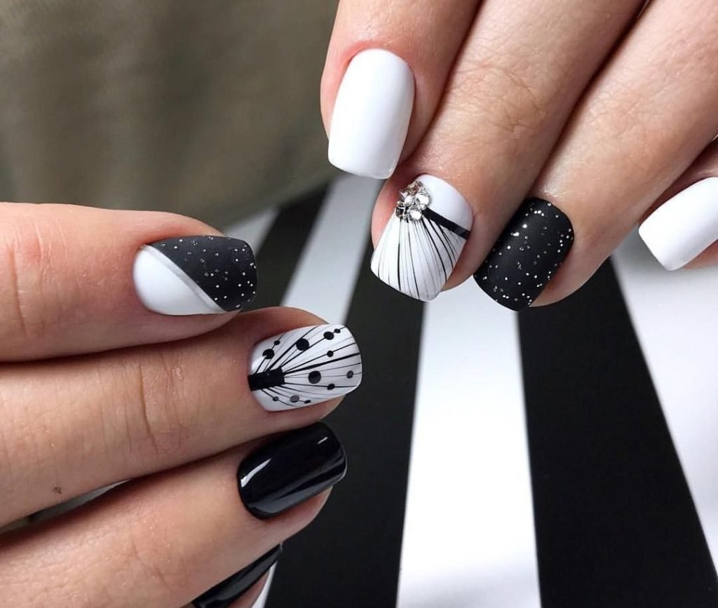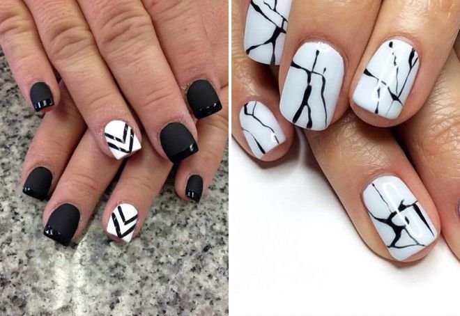 Модный черно белый маникюр