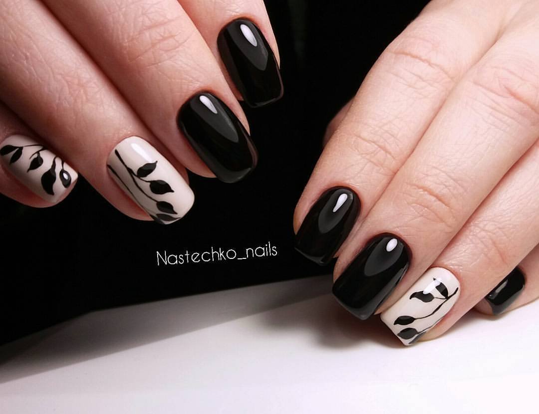 Черный маникюр с рисунком
