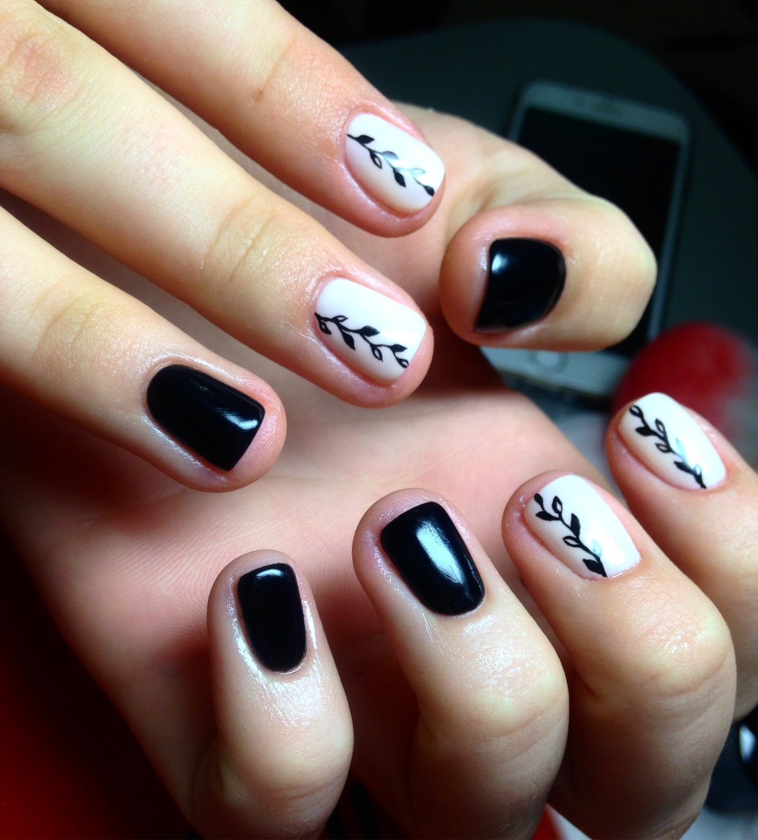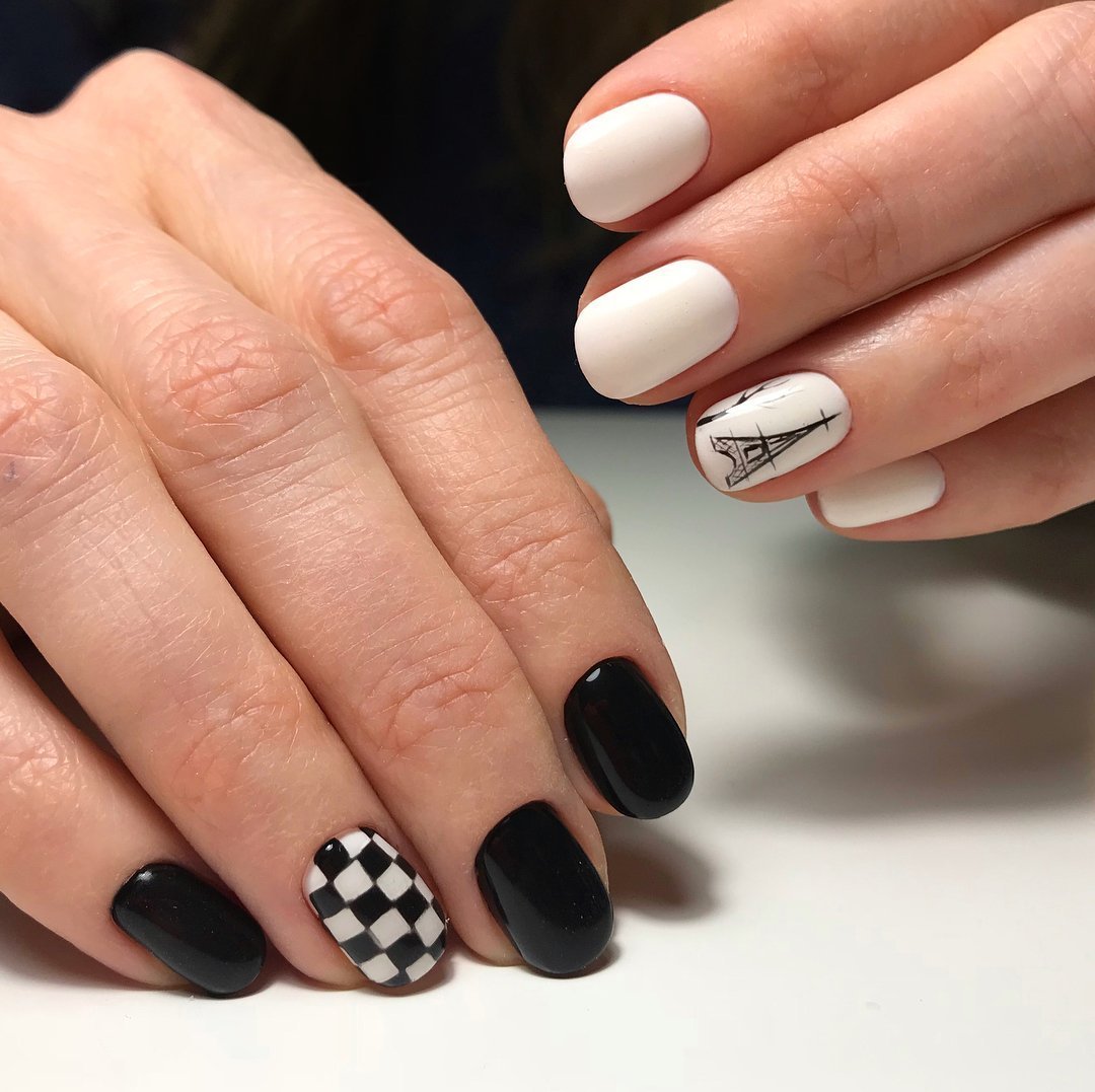 Черно белый маникюр на короткие ногти