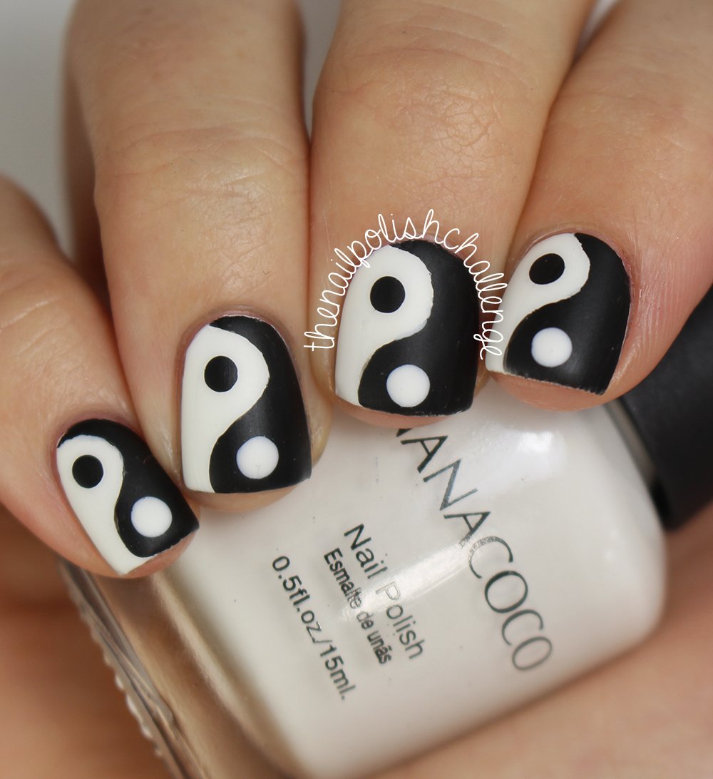 ![Чёрно-белые рисунки на ногтях]()