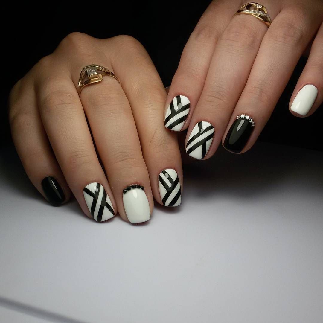 Прикольный маникюр черный с белым