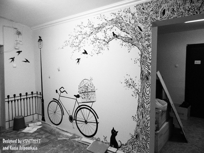 Роспись стен маркером в интерьере