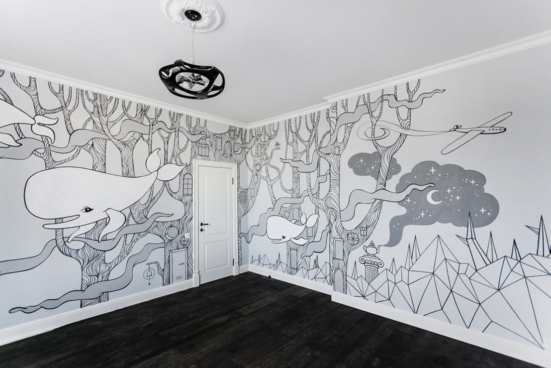 Графическая роспись стен в квартире