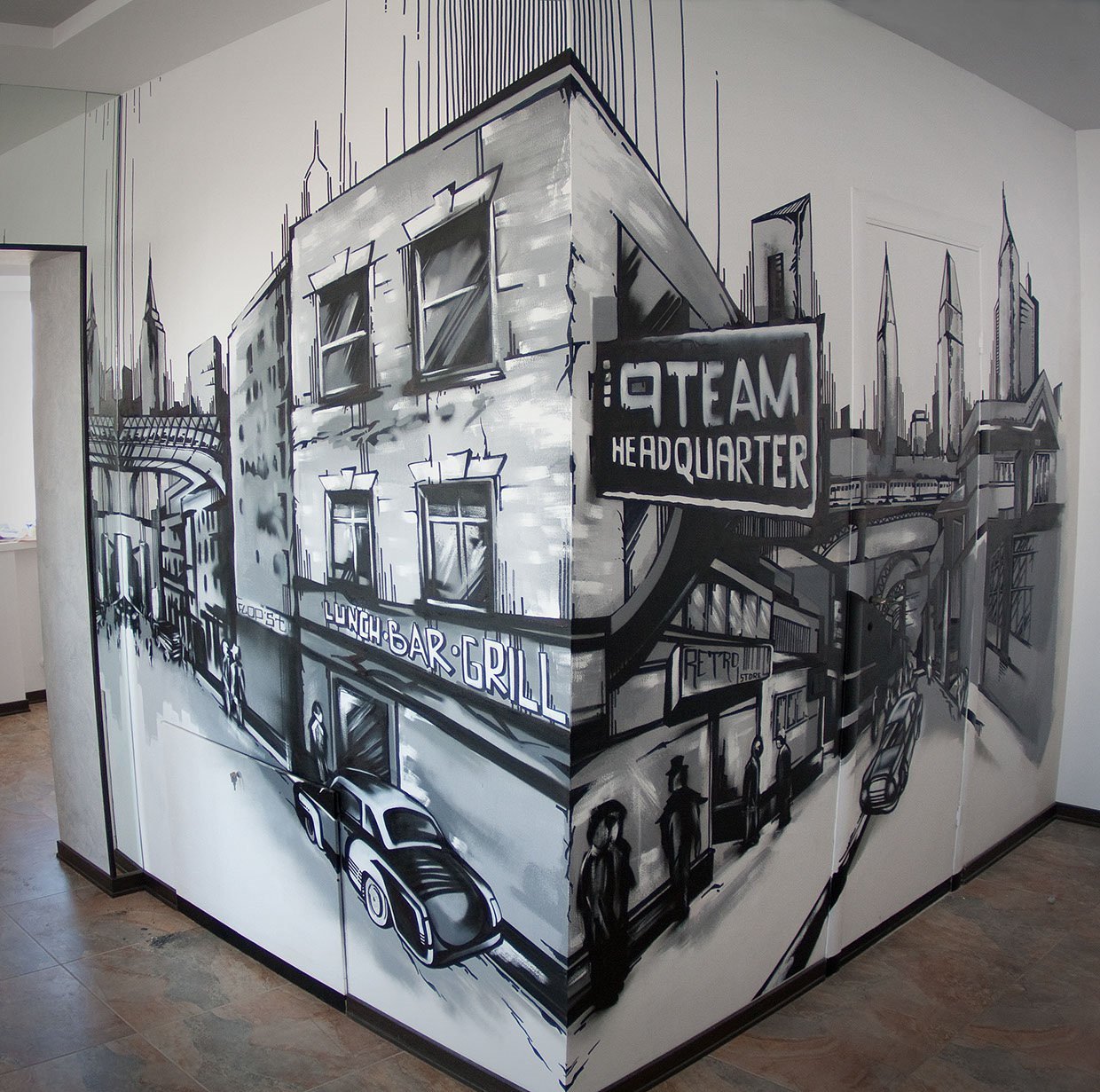 ![Роспись стен черно белая]()