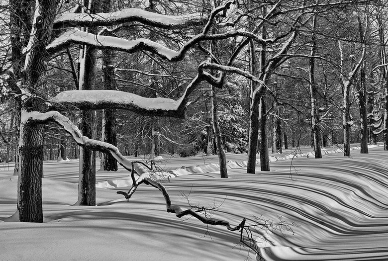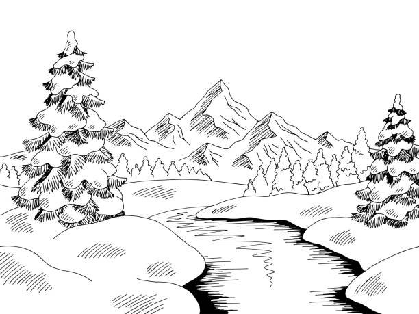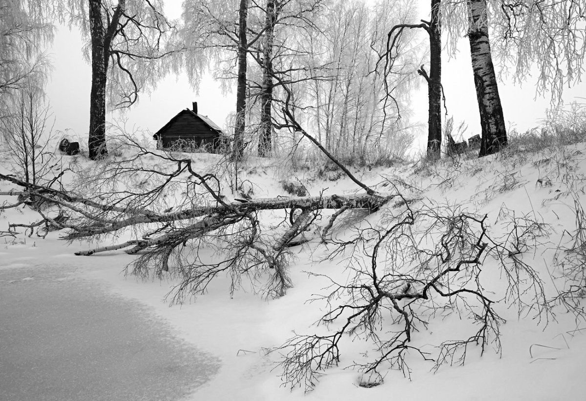 ![Зимний пейзаж черно белый]()