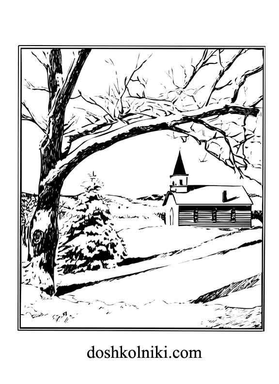 Зимний пейзаж раскраска для детей