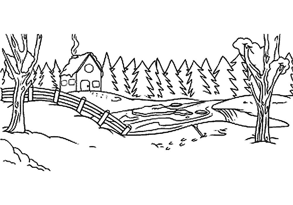 Зимний пейзаж раскраска