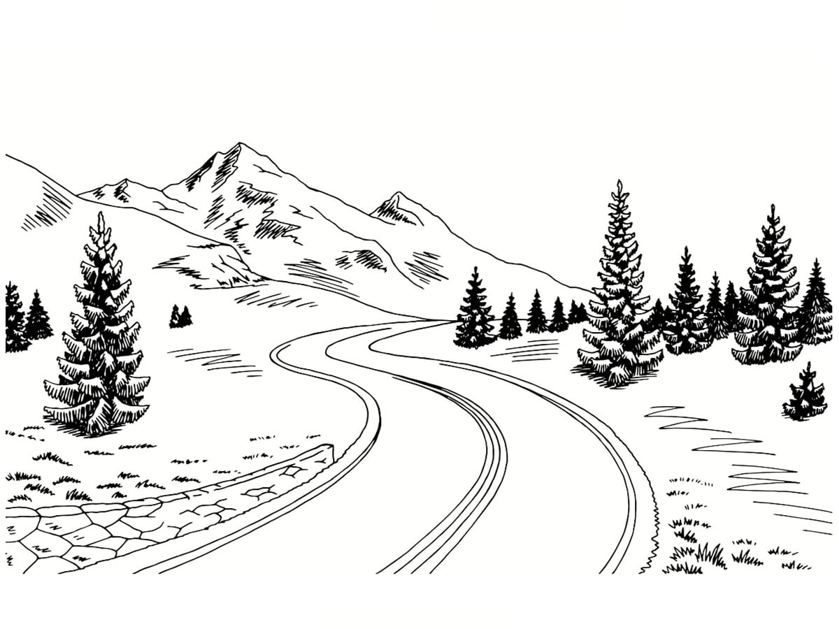 ![Эскиз пейзажа карандашом для раскрашивания]()