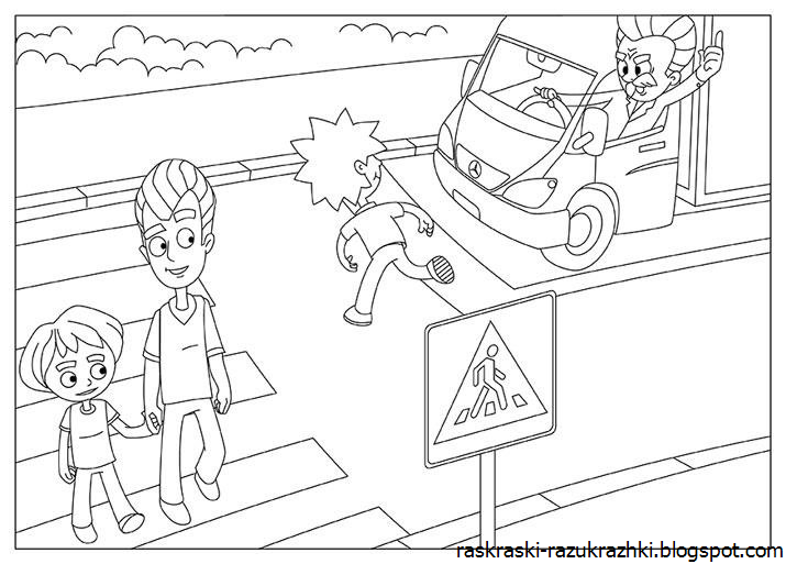 ![Рисунок правила дорожного движения для детей в садик черно белый]()