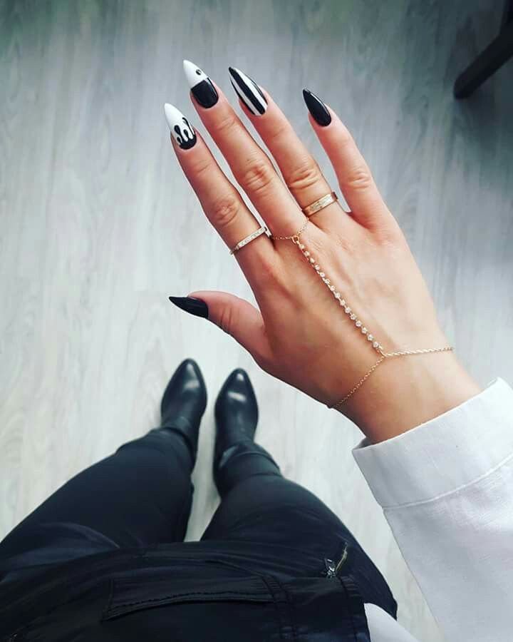 Представляем вам уникальный маникюр, который сразу привлекает внимание и создает экстравагантный образ. Наши мастера специально для вас предлагают комбинацию черного и белого на ногтях одной руки. Этот яркий контраст добавляет неповторимость вашему образу и подчеркивает вашу индивидуальность. Но это еще не все! Мы также добавили уникальные рисунки, которые придают маникюру особую изюминку. Разнообразие дизайнов позволяет выбрать именно то, что отражает ваш характер или сочетается с вашим стилем. Будьте смелыми и выделитесь среди остальных с нашим оригинальным маникюром "Одна рука черная, другая белая с рисунком"!