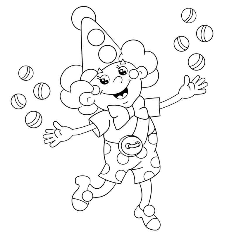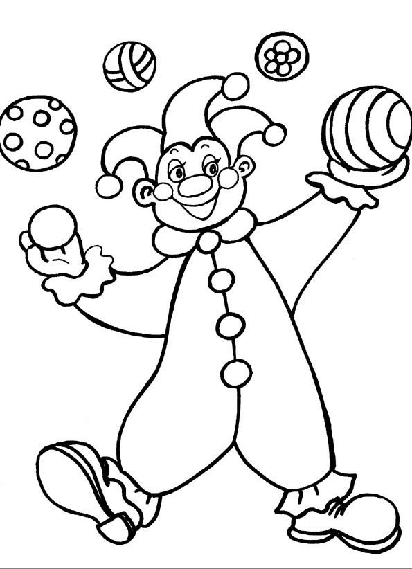 ![Клоун жонглирующий шариками раскраска]()