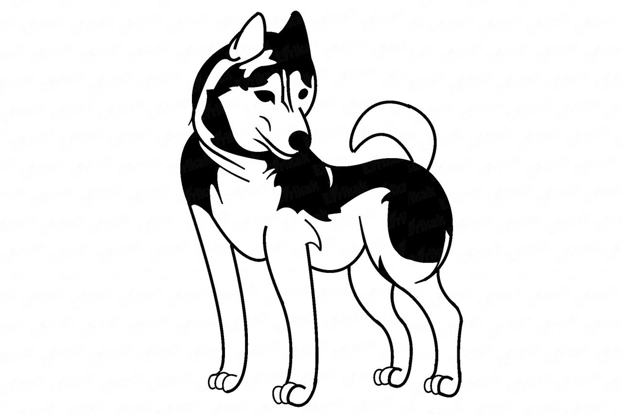 ![Собака хаски контур]()