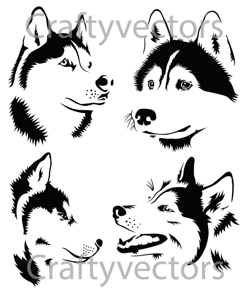 ![Трафарет морды хаски]()
