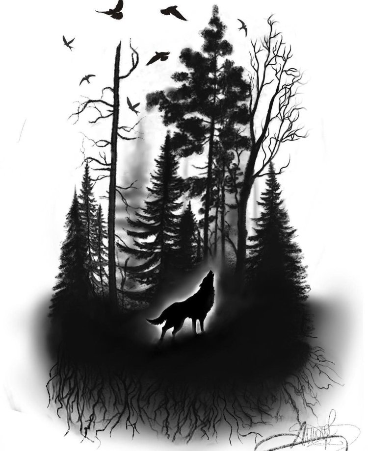 Тату эскизы блек ворк лес