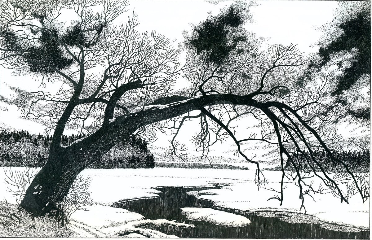 ![Чёрно-белая Графика природа]()