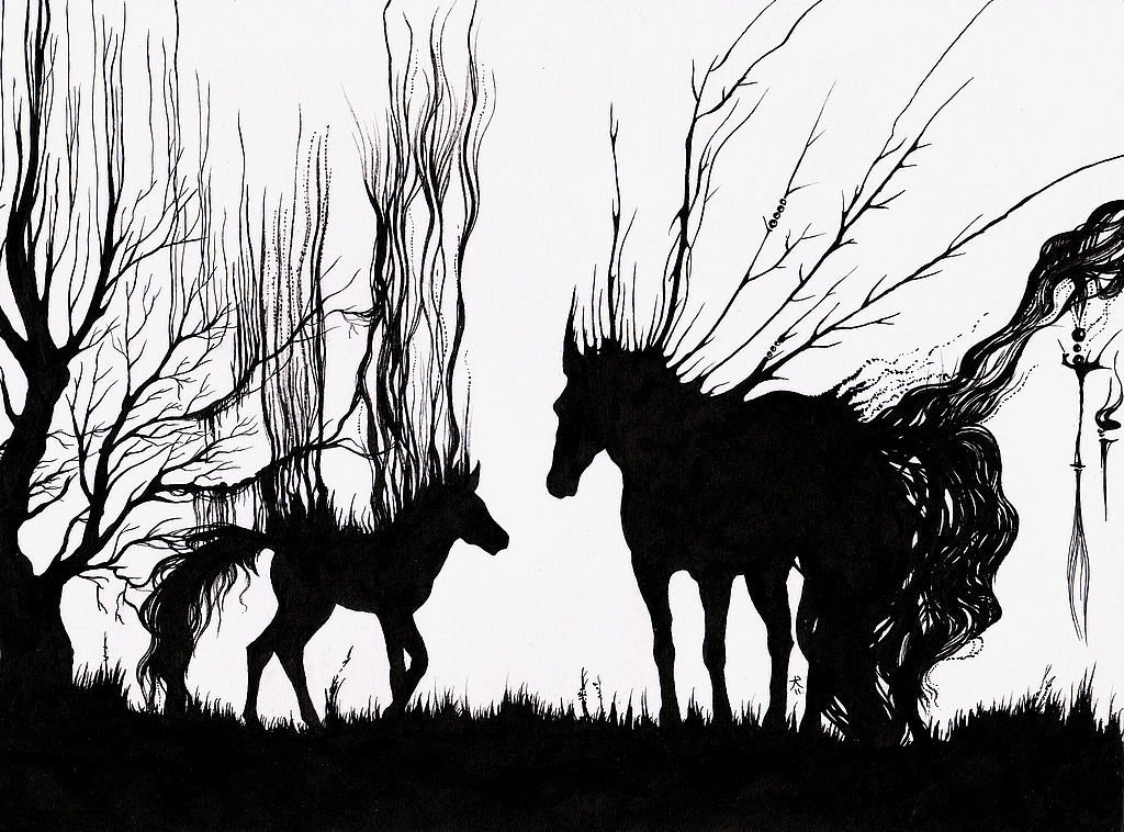 Лошадь тушью