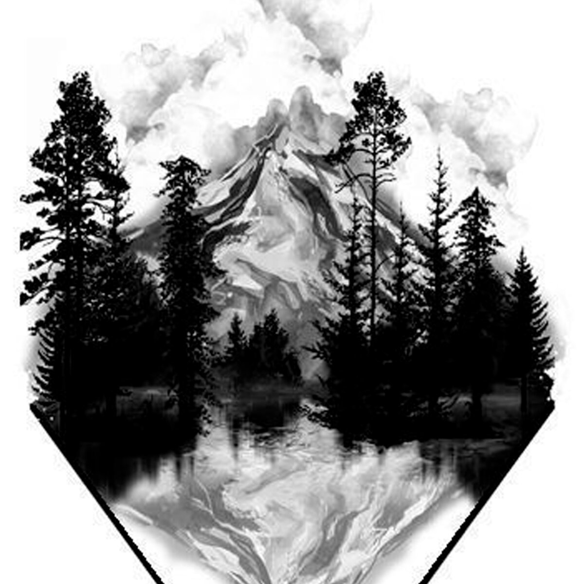 ![Эскиз тату горы и лес]()
