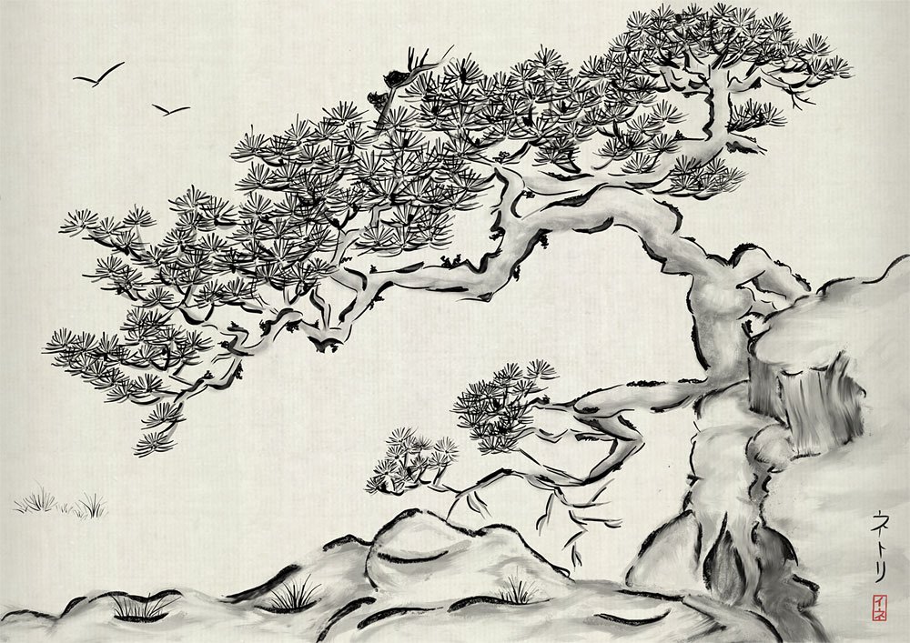 ![Пейзаж Японии карандашо=м]()