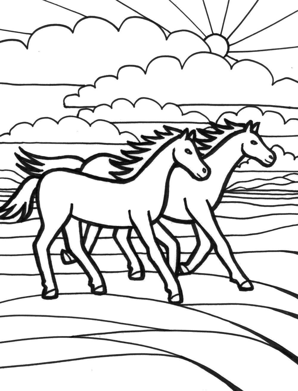 ![Раскраска лошади на природе]()