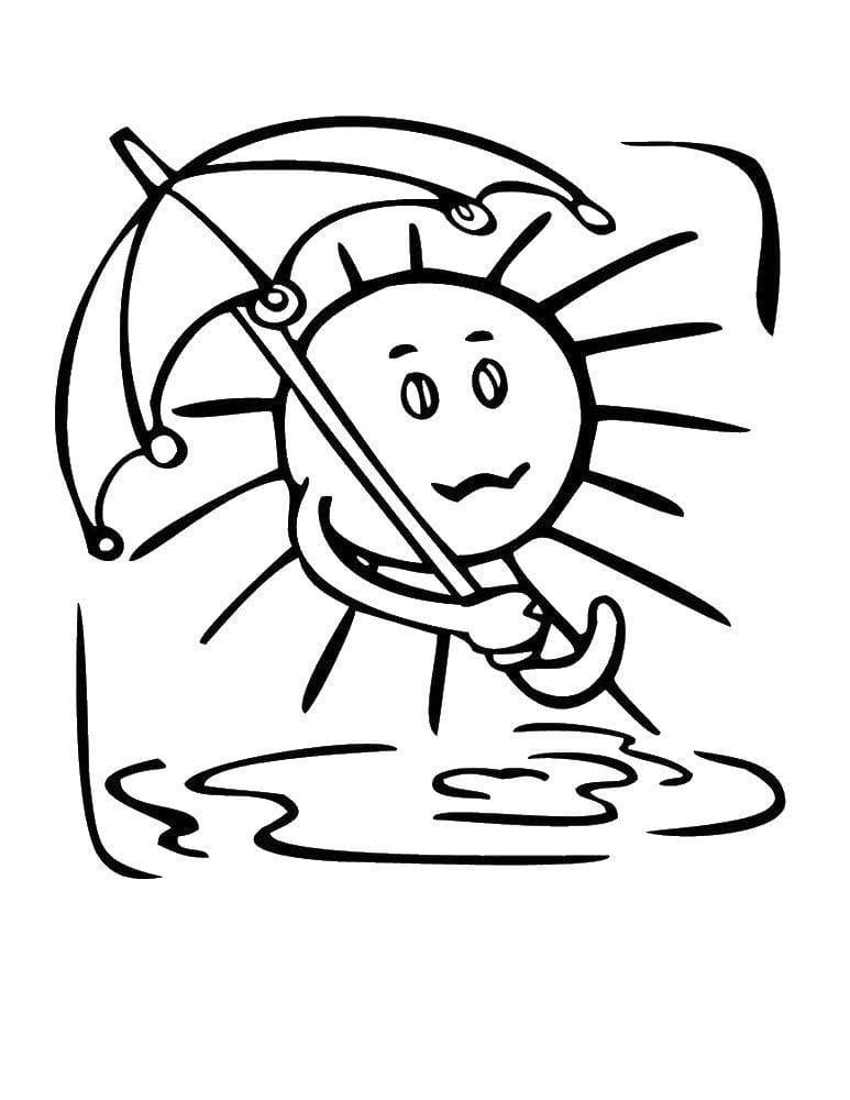 Раскраска солнышко с зонтиком для детей